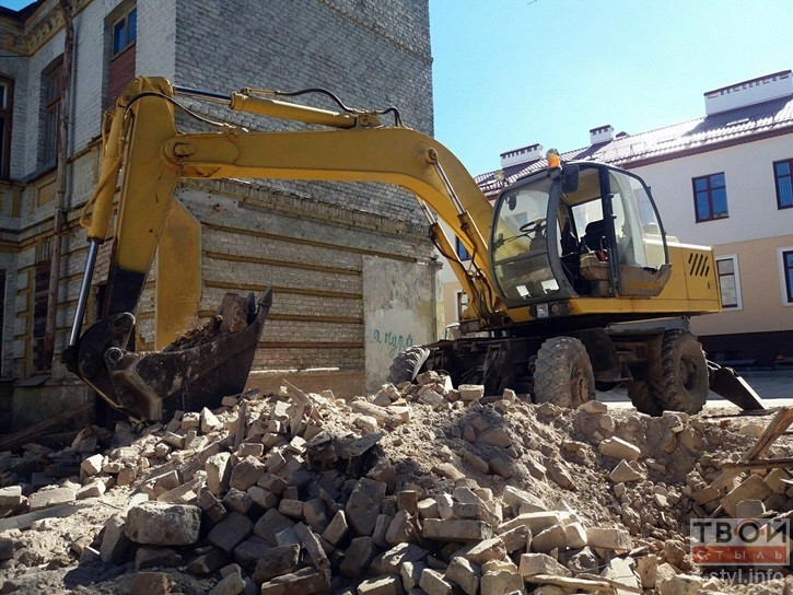 Падрыхтоўка да зносу дома № 7б пачалася некалькі дзён таму. У бліжэйшыя дні яго цалкам знясуць і вывезуць смецце. Дом № 7а, які знаходзіцца побач, па словах будаўнікоў, адразу ж пачнуць рэстаўраваць.