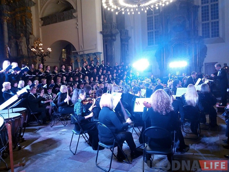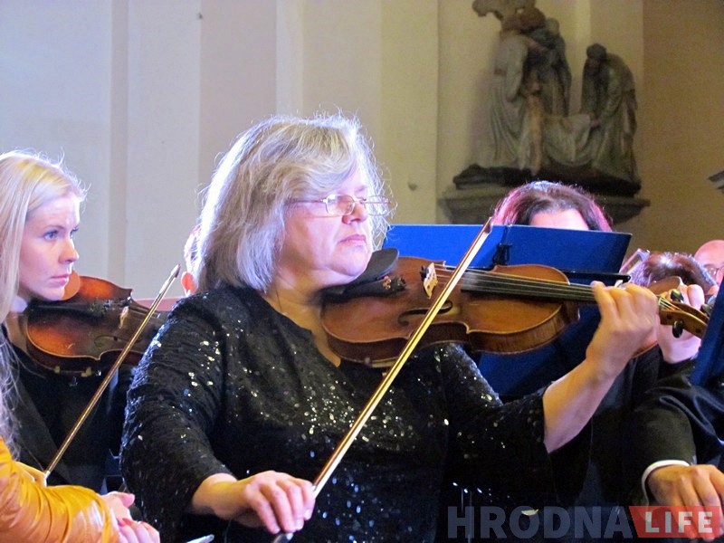 Гэта ўжо трэці выступ гродзенскіх музыкаў у Фарным касцёле. У лютым пры поўным храме гралі “Рэквіем” Моцарта. А год таму гродзенцы выступалі з сімфоніяй Бетховена.