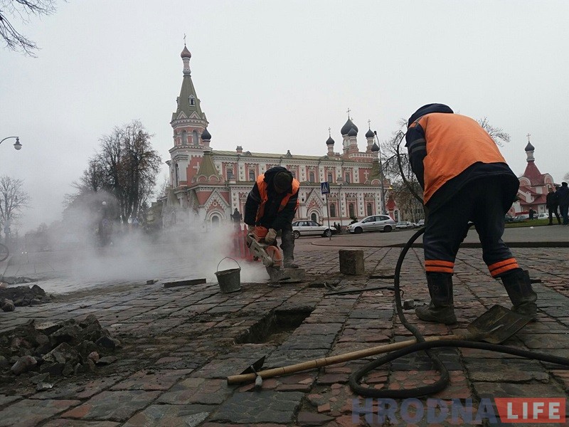 Замест старога разбітага бруку на дарозе выкладваюць савецкія копіі выпушчаныя ў 1960-70 гадах. Рабочыя адзначаюць, што савецкія кубікі амаль не саступаюць польскім. Вось толькі на выгляд у іх больш бетону, чым камянёў.