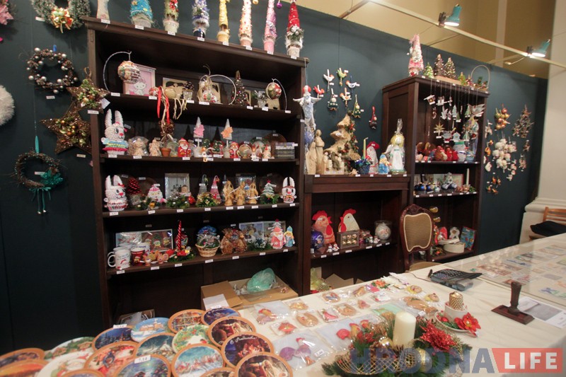 На выставе працуе калядны кірмаш, дзе можна набыць падарункі і сувеніры да святаў працы гарадзенскіх майстроў.