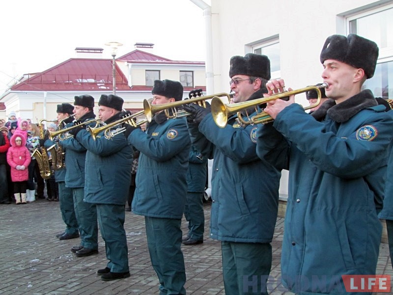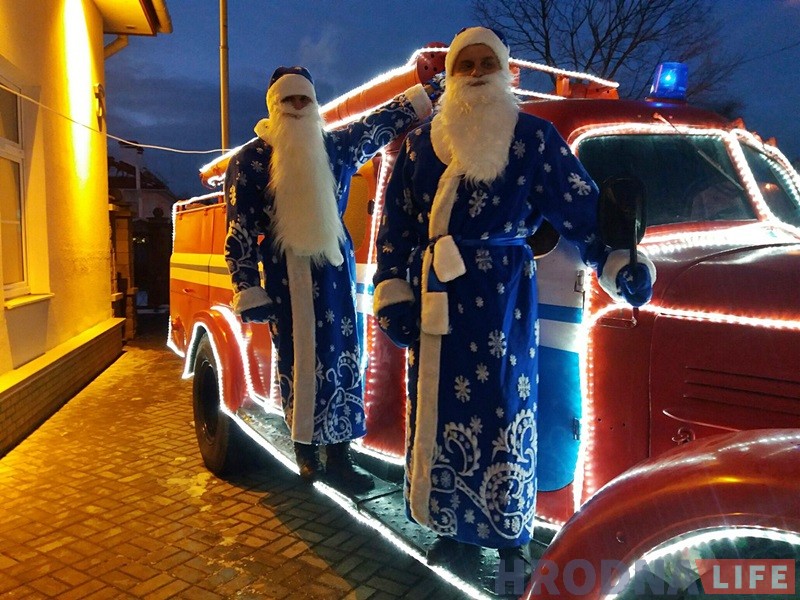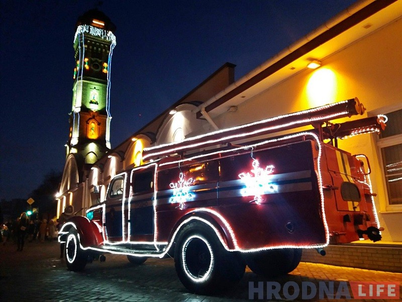 Побач з каланчой запаліліся і навагоднія агні на пажарным рэтра-аўтамабілі.