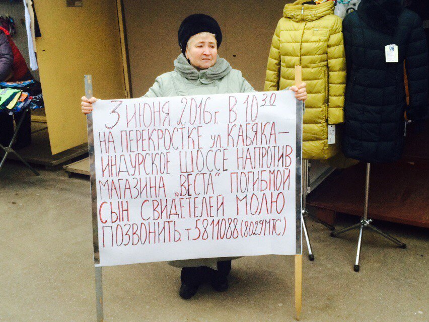 Чытачы Аўтагродна паведамляюць, што ў розных месцах горада сустракаюць жанчыну з плакатам. Яна выходзіць да людзей з просьбай аб дапамозе: шукае сведкаў цяжкай аварыі, у якой загінуў яе сын.