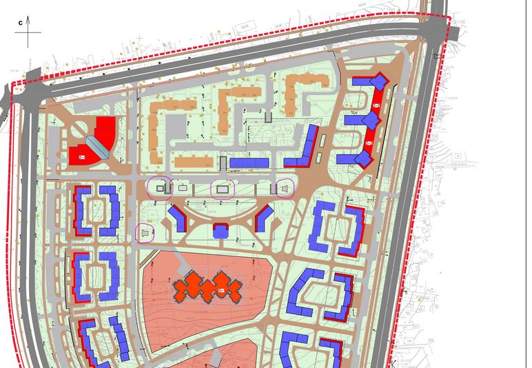 Праектам прапануецца квартальны схема забудовы, якая па сваёй структуры, маштабе і атмасферы будзе блізкая да існуючай, але будзе адказваць сучасным патрабаванням фарміравання жылога асяроддзя мікрараёна. Дадзеная планіровачная структура дазваляе стварыць ўнутры двароў прыватнае, абароненую ад шуму і выхлапаў магістральных вуліц, свабодную ад транспарту прастору з пляцоўкамі для гульняў і адпачынку.