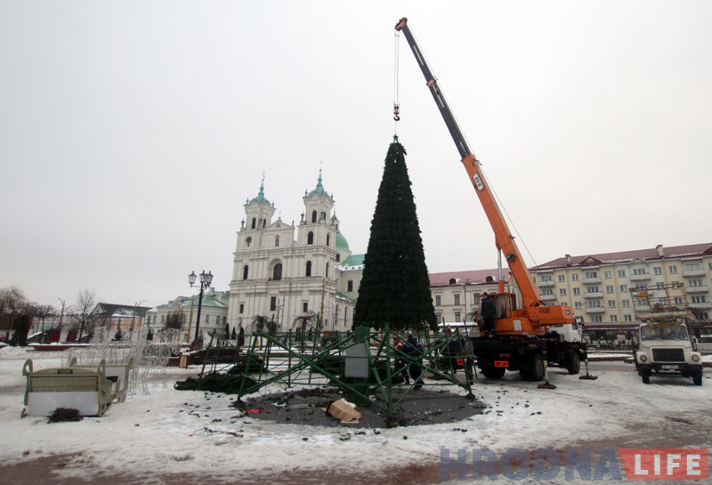 Навагоднія і калядныя святы мінулі, на цэнтральных плошчах горада пачалі дэмантаж галоўных гарадскіх елак.