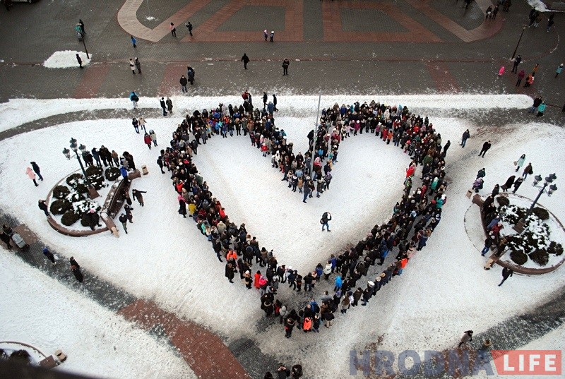 У дзень закаханых на плошчы Савецкай прайшоў флэшмоб пад назвай “Вогненнае сэрца”, у якім прынялі ўдзел некалькі сотняў гродзенцаў. Усе ўдзельнікі сталі ў вялікае сэрца і адначасова ўключылі падсветку сваіх тэлефонаў.