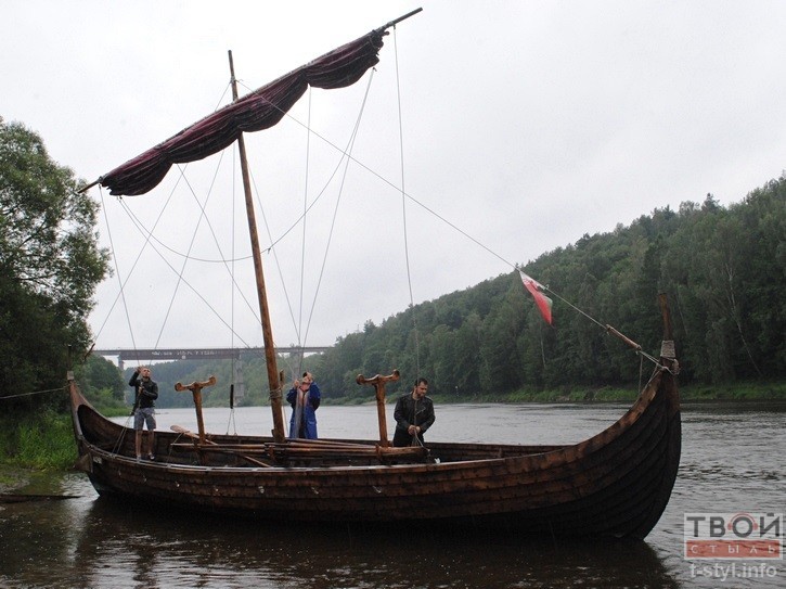 Карабель, на якiм вікінгi разам з добраахвотнікамі плылi да мора, называецца “Яцвяг”. Ён пабудаваны ў адпаведнасці з арыгіналам знаходкі X стагоддзя для суднаходнага праекта “Спадарожны вецер”. Дракар мае даўжыню 14 метраў і змяшчальнасць да 20 чалавек.
