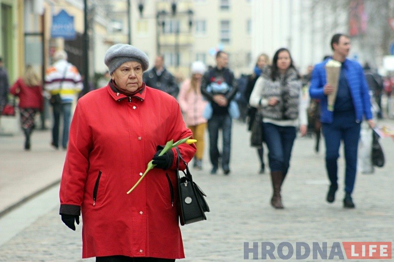 У гэты дзень у Гродне праходзяць святочныя мерапрыемствы. Жанчынам дараць кветкі, у цэнтры горада выступаюць артысты.