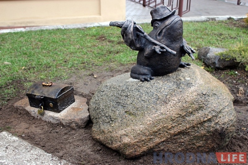 Бронзавая жабка-падарожніца з катомкай за плячыма і компасам была ўсталяваная на Ажэшкі ля турысцка-інфармацыйнага цэнтра ў 2009 годзе. Паўмятровая бронзавая скульптура вагой у 40 кг задумвалася як сімвал турыстычнага Гродна.