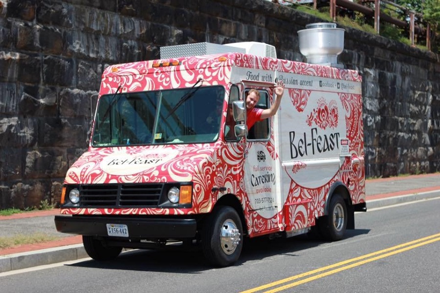 Аляксей тлумачыць, што адкрыў фудтрак разам з жонкай Кацярынай, якая таксама родам з Гродна. Яны разам пераехалі ў Вашынгтон і адкрылі сваю справу. Да гэтага Аляксей знаёміўся з бізнесам і глядзеў, як усё працуе, на прыкладзе іншых фургонаў з ежай. Цяпер Bel-Feast кожны дзень спыняецца ў розных месцах горада.