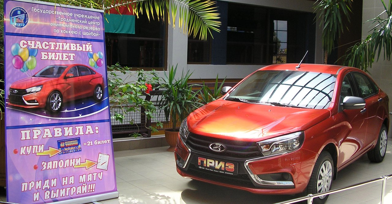 У апошні дзень сакавіка ў Гродзенскім лядовым палацы сярод заўзятараў, якія на працягу хакейнага сезона зарэгістраваліся ў рэкламнай гульні «Шчаслівы білет», адбыўся розыгрыш галоўнага прыза – аўтамабіля “Лада-Веста”. Сярод 252 заўзятараў пераможцам стаў гродзенец Віктар Радзюк. Свой падарунак ён атрымае на матчы зборных Беларусі і Швецыі, які пройдзе ў Гродне 21 і 22 красавіка.
