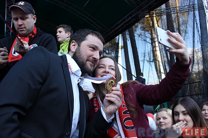 Адмыслова ў гэты вечар для хакеістаў была зроблена чырвоная дарожка па якой яны прайшлі на галоўную сцэну, дзе ім уручылі залатыя медалі. Пасля ўзнагароджання і слоў падзякі як спонсарам, так і кіраўніцтву вобласці, камандзе Белпошта ўручыла больш за 3 тысячы лістоў, якія даслалі заўзятары ў знак падзякі за чэмпіёнства.