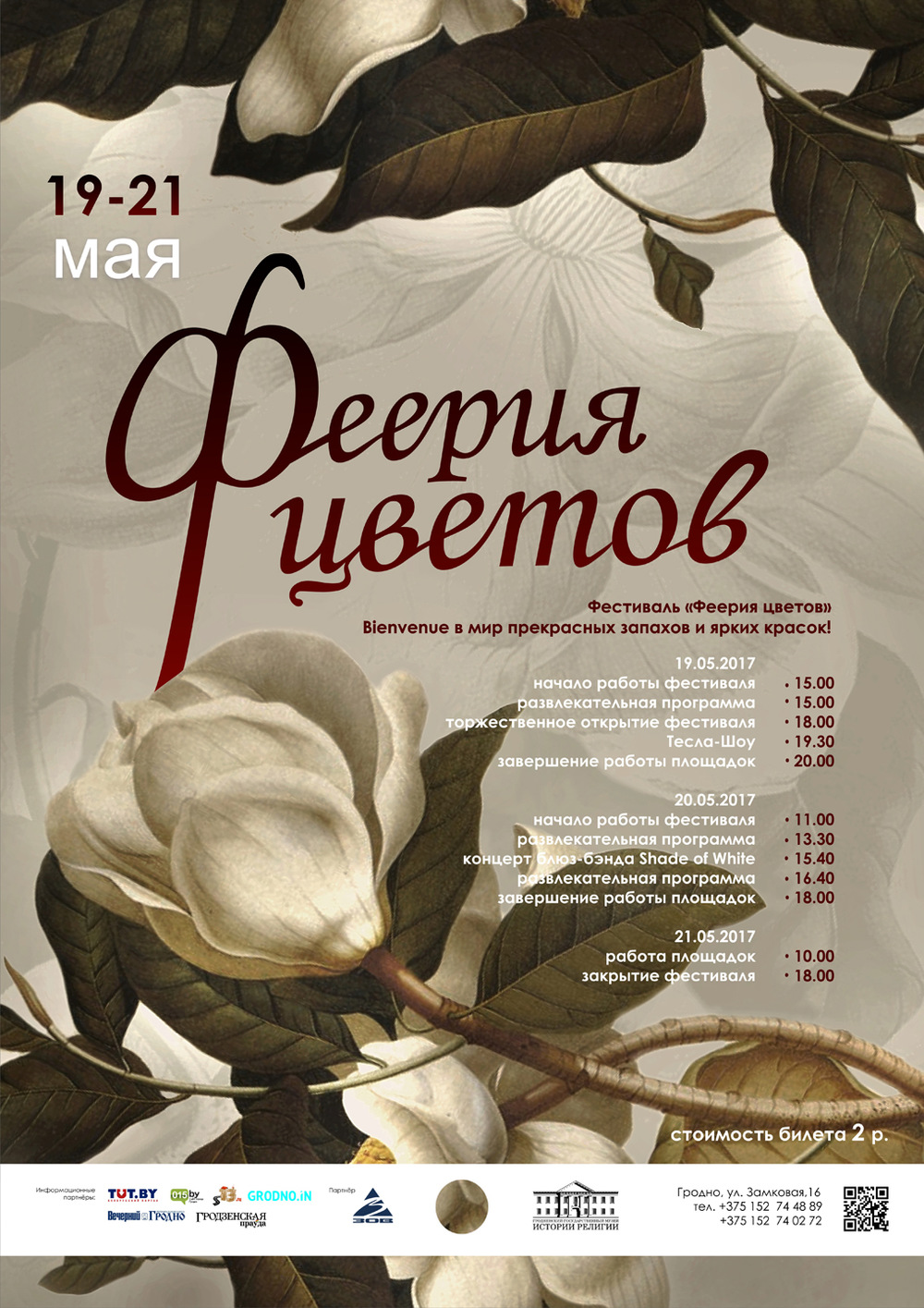 Асноўнай жа тэмай і лейтматывам свята стануць кветкі. Дарэчы, імі ўжо з 19 мая тры дні будзе запоўнены ўвесь двор музея: тут пройдзе фестываль «Феерыя кветак». Сцяна з моху, стабілізаваныя кветкі, букеты і кампазіцыі на любы густ: тут можна ўбачыць усё самае моднае ў свеце фларыстыкі. Так што свята «Ноч у музеі» арганічна злучыцца з фэстам. Кожны жадаючы зможа адчуць сябе фларыстам.