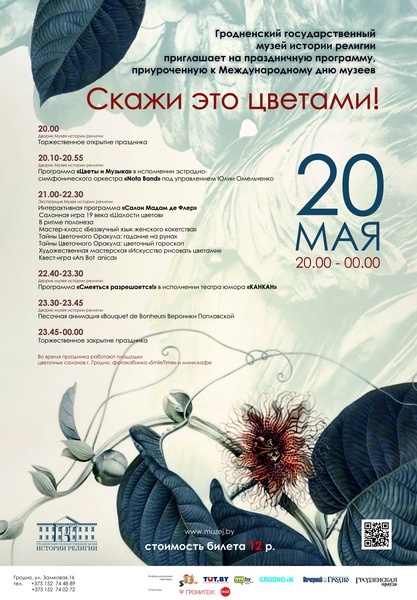 Пачатак праграмы «Скажы гэта кветкамі!» у музеі гісторыі рэлігіі ў 20.00.