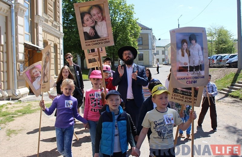 Для самых маленькіх прадстаўнікоў абшчыны каля сінагогі быў падрыхтаваны вялікі сюрпрыз – надзіманая горка. Таксама каля сінагогі прайшоў невялікі дзіцячы парад. Для дарослых свята пачалося за сталом, на якiм прысутнічалі шакалад, садавіна, гародніна і многае іншае.