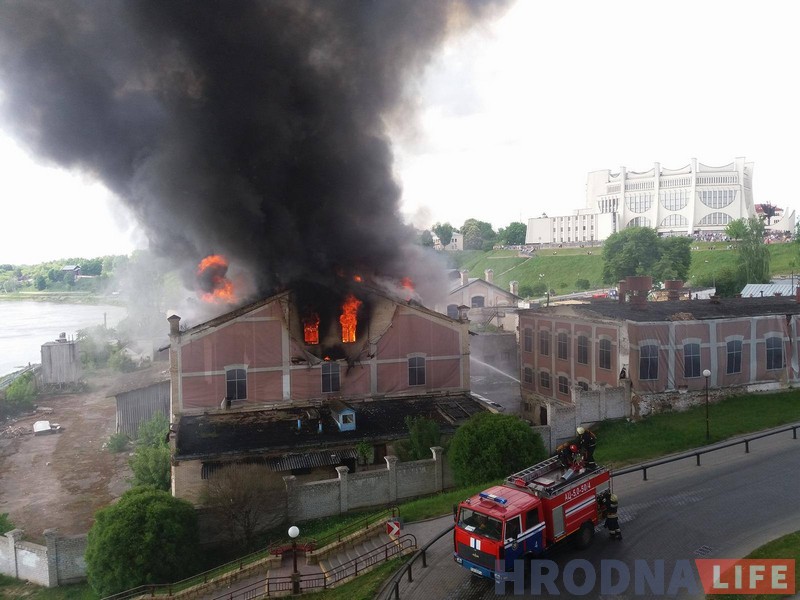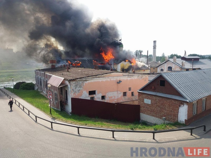 Палыхае дах старога піўзавода. Увесь стары мост у дыму. Паводле папярэдняй інфармацыі, падпалілі яго дзеці, якія гулялі на тэрыторыі.