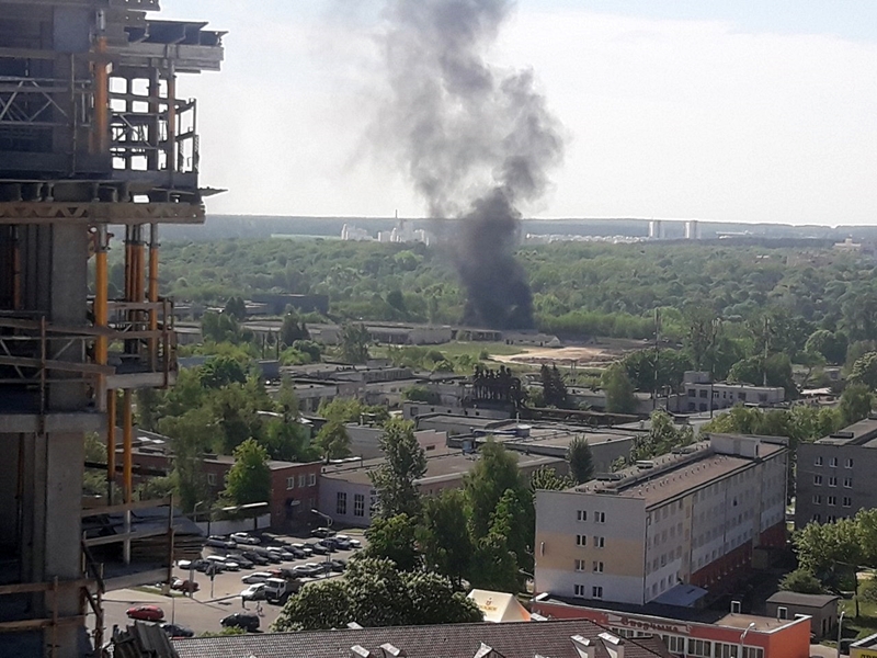 Некалькі гродзенцаў у аўторак 23 мая прыблізна ў 11.00 пачалі выкладваць у сацыяльныя сеткі фатаграфіі з чорным дымам у раёне вуліцы Лідскай. Як аказалася пазней, там гарэла смецце на былых ваенных складах.