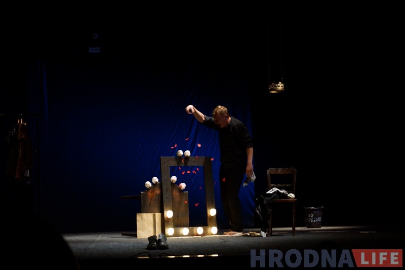 Спектакль з выкарыстаннем фрагментаў шэкспіраўскага тэкста “Гісторыя прынца Г.” паказалі ў гродзенскім тэатры лялек 24 мая ў межах гастроляў Беластоцкага тэатра. Рэжысёр-пастаноўшчык Яцэк Маліноўскі кажа, што гэты спектакль – спроба падгледзець скрозь замочную адтуліну за акцёрам у яго грымёрцы, у інтымным творчым працэсе, падчас падрыхтоўкі да ролі Гарацыя ў пастаноўцы «Гамлет». На сцэне ўвесь час іграе толькі адзін актор – Блаз Пятроўскі. Апроч яго голасу са сцэны гучала толькі музыка Макса Рыхтэра.