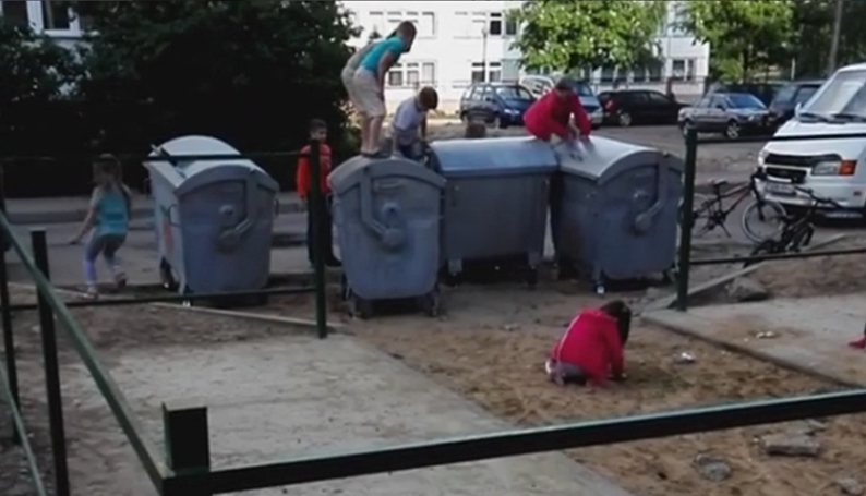 Відэа яна падпісала так: “Адабралі дзіцячую пляцоўку ў дзяцей пад сметніцы, але… дзеці знайшлі і ў гэтым свае плюсы. Колькі дзяцей не ганялі, яны ўсё роўна вяртаюцца гуляць да сметніцы”.