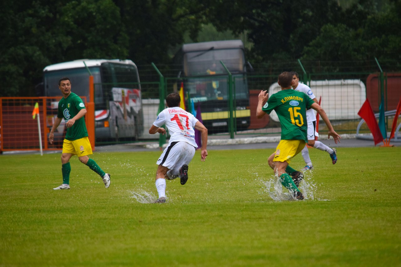 Матч у супернікаў выдаўся няпросты, пагаворвалі нават пра перанос гульні з-за лужын, якія ўтварыліся на поле пасля працяглых дажджоў. Але работнікі стадыёна ў Мазыры здолелі падрыхтаваць поле і каманды выйшлі гуляць.