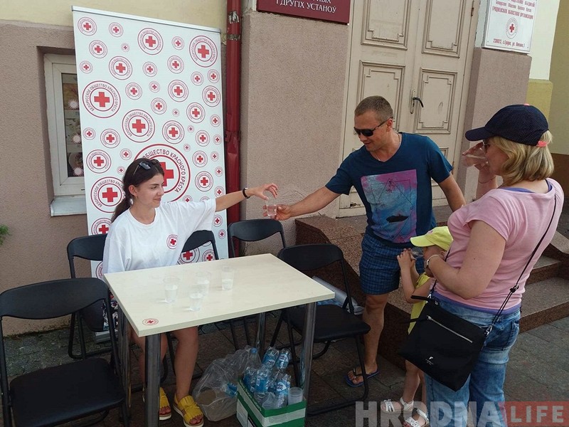 У чарговы раз валанцёры Чырвонага крыжа выходзяць на вуліцы горада, каб дапамагчы гродзенцам перанесці спякоту. У людных месцах арганізавана выдача пітной вады, аказваецца першая неабходная дапамога.