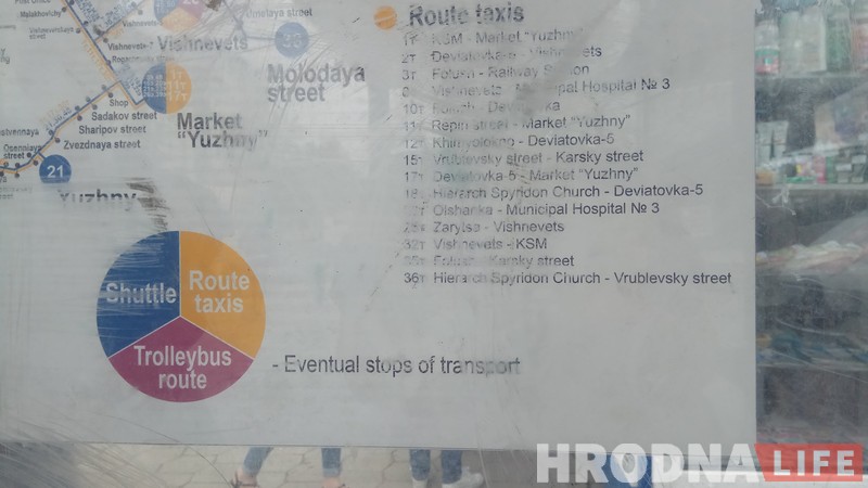 “Public transport scheme g. Grodno” – дакумент сапраўды цікавы, і дасць шмат нагодаў для роздуму як тым, хто знаёмы з кірыліцай, так і тым, хто прывык да лацінкі.