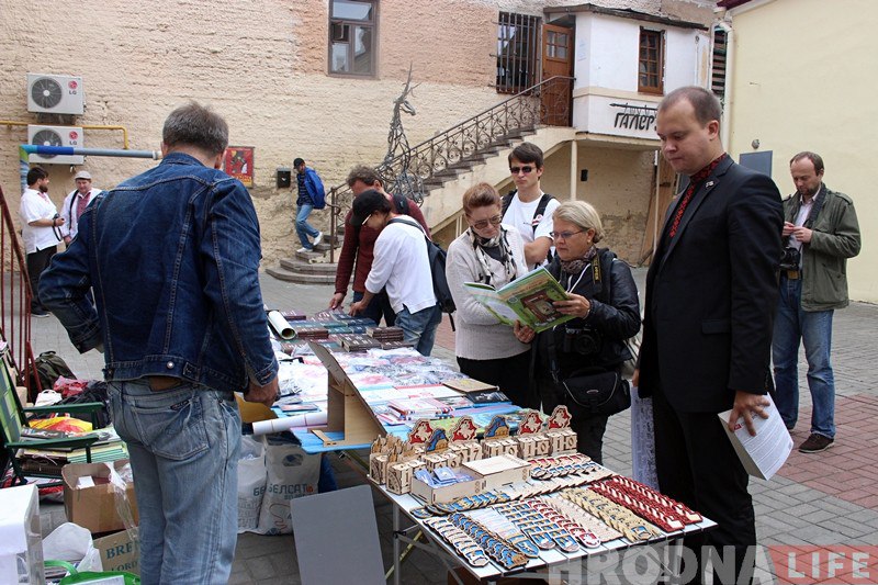 У двары на Савецкай галоўны арганізатар імпрэзы Алесь Мазанік са сваёй камандай аб’яднаў розныя праявы творчасці вядомых айчынных аўтараў ды даў магчымасьць гродзенцам набыць якасную сувенірную ды іншую нацыянальнарыентаваную прадукцыю ад вытворцаў па добрых коштах.