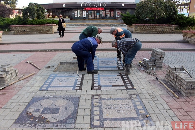 Каля Моладзевага цэнтра “Гродна” 19 верасня супрацоўнікі Рэмбудаўтадора пачалі ўстаноўку чарговых пліт у Алеі кіно.