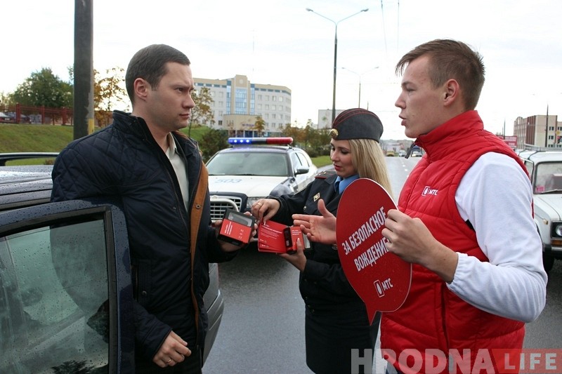 ДАІ сумесна з кампаніяй МТС спыняла кіроўцаў, правярала дакументы, нагадвала пра правілы бяспекі на дарозе і дарылі партатыўныя bluetooth-гарнітуры. Акцыя “За бяспечнае кіраванне” прайшла 6 кастрычніка на вуліцы Дубко. Ініцыятарам быў менавіта аператар сувязі.
