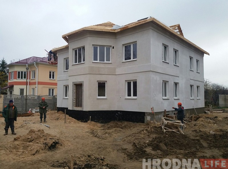 Працы на будове вядуцца штодня ў паскораным рэжыме. Галоўная задача рабочых – паспець здаць дом да канца года. У будынку будзе жыць вялікая гродзенская сям’я з прыёмнымі дзецьмі.