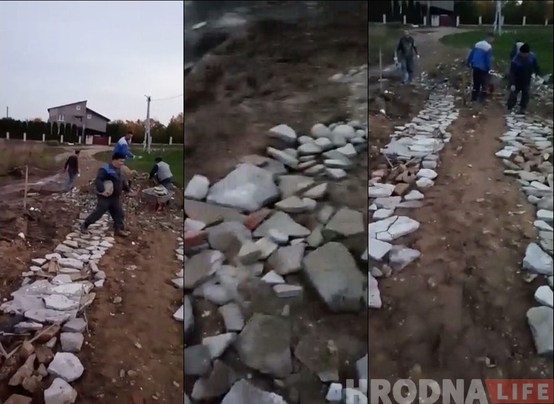 У пачатку лістапада мужчыны з Забалаці-2 самі выйшлі на рамонт дарогі на вуліцы Крапівы. Яны выкарысталі будаўнічае смецце: скарыстаную плітку, бетон, цэглу і камяні.