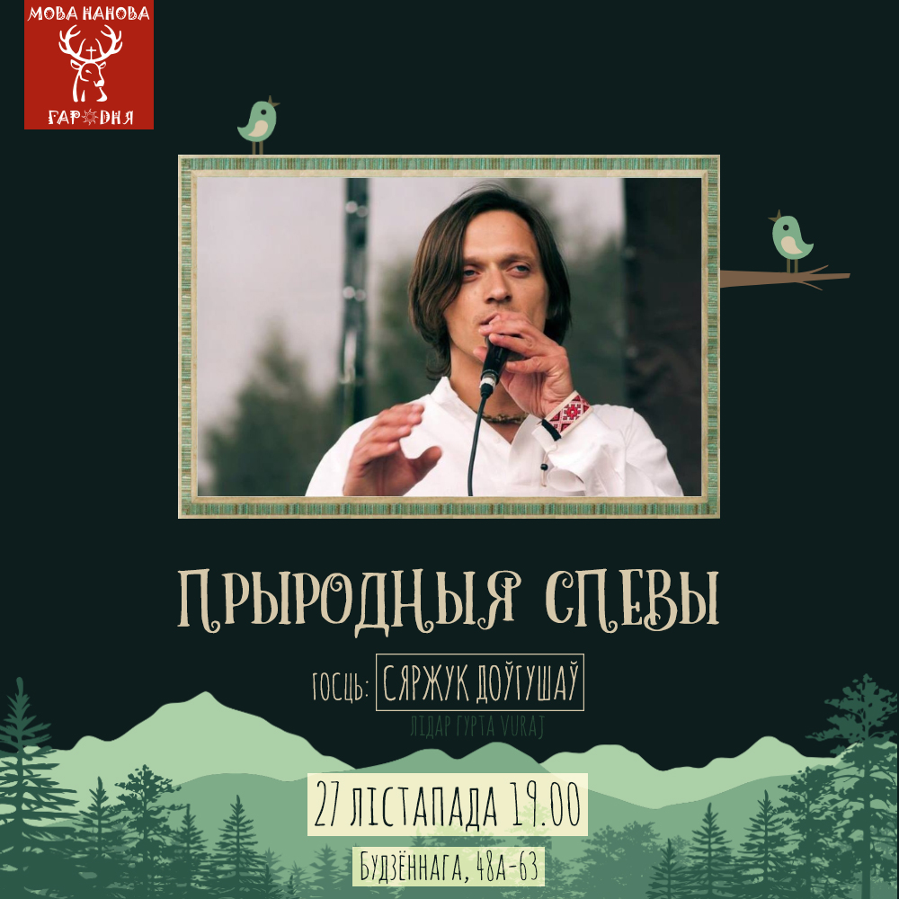 Лідара гурта Vuraj, саліст Дзяржфілармоніі, этнограф Сяржук Доўгушаў выступіць на гарадзенскіх курсах беларускай мовы “Мова Нанова”. Тэмай заняткаў будзе “Прыродныя спевы”.