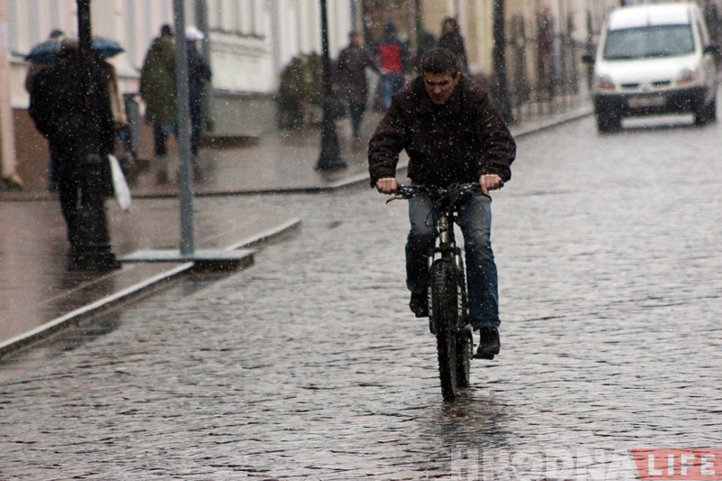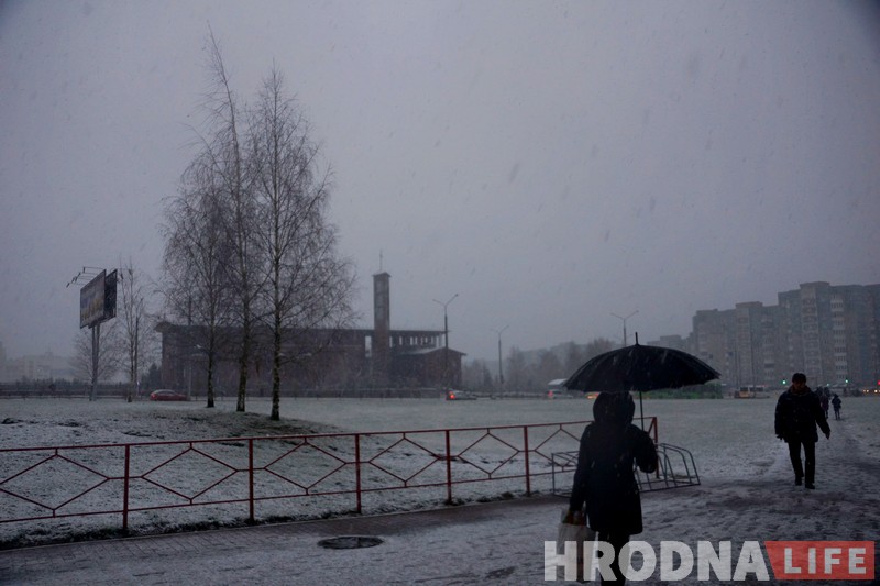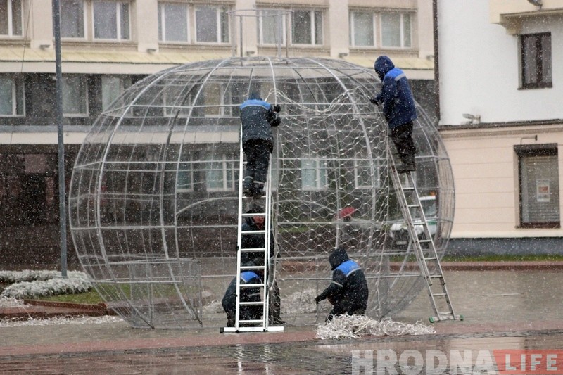 У Гродне 30 лістапада цэлы дзень ідзе мокры снег, увечары ён толькі ўзмацніўся. Нягледзячы на дрэннае надвор’е, у цэнтры горада поўным ходам ідзе падрыхтоўка да навагодіх святаў. Не палохае снег мясцовых вулічных музыкаў і веласіпедыстаў. Як праходзіць апошні дзень восені гэтага года ў Гродне, глядзіце ў аб’ектыве карэспандэнта Hrodna.life.
