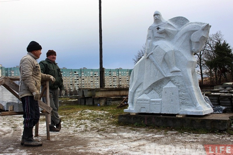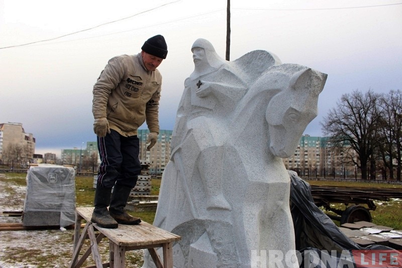 Пастамент разам са скульптурай у два з паловай метры вышынёй і вагой амаль 10 тон прывезлі ў Гродна ноччу 5 снежня. Дастаўлялі скульптуру з Мінска спецыяльным МАЗам. Да ўстаноўкі помнік будзе знаходзіцца на тэрыторыі Сабора Усіх Беларускіх Святых.
