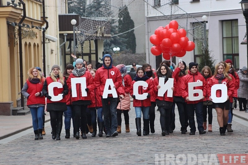 У міжнародны дзень “дзякуй”, які адзначаецца 11 студзеня, у Гродне абласная арганізацыя Чырвонага Крыжа правяла незвычайную акцыю, з дапамогай якой падзякавала валанцёрам і гараджанам за аказаную дапамогу на працягу мінулага года.