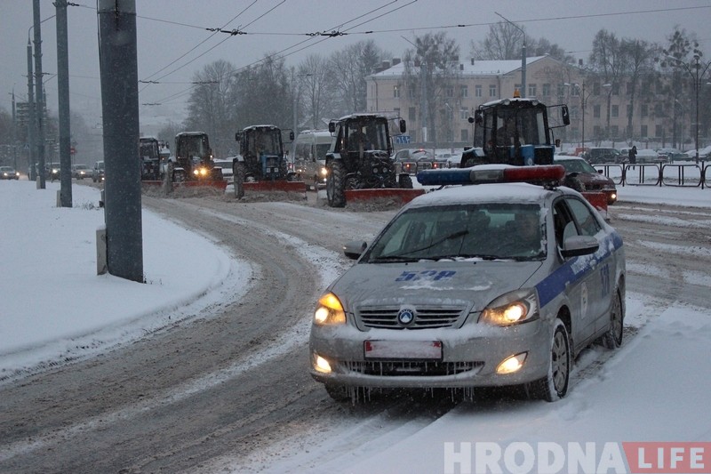 Ва ўборцы снегу ўся даступная тэхніка «Спецаўтагаспадаркі». Дарогі пасыпаюць апрацоўчай сумессю. Нягледзячы на гэта, у ДАІ адзначаюць, што з моцным снегападам у Гродне вырасла колькасць ДТЗ. Таксама ўтварыліся вялікія заторы. Кіроўцы едуць паволі, бо шмат дзе пра тармажэнні можа занесці.