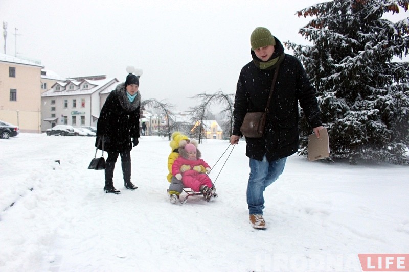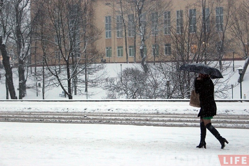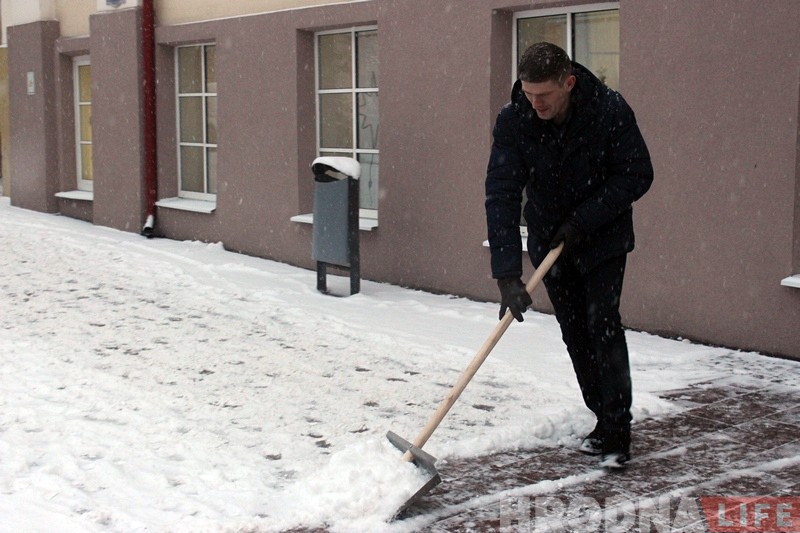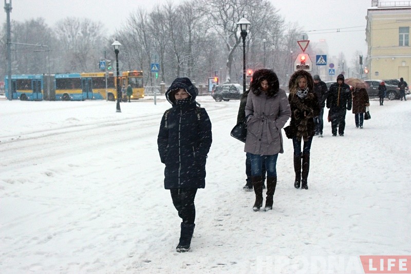 У сераду 17 студзеня ў Гродне цэлы дзень ідзе снег. З самай раніцы на вуліцах горада працуюць снегаўборачная тэхніка і дворнікі.