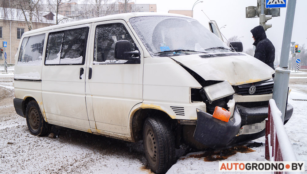 За ноч у Гродне выпаў снег, а ўжо раніцай “АўтаГродна” зафіксаваў першую аварыю, звязаную з ўмовамі надвор’я. Каля 11 гадзін жанчына на VW Transporter паварочвала налева з вуліцы Сав.Памежнікаў на вуліцу В.Соламавай.