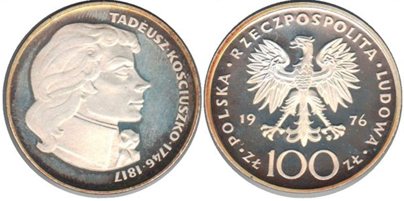 Адной з самых экзатычных і дарагіх з’яўляецца залатая манета 2010 года эмітаваная Востравам Ніўэ. На аверсе двухдоларавай манеты партрэт Елізаветы ІІ, на рэверсе – Тадэвуш Касцюшка.