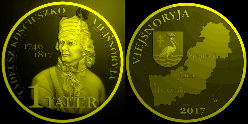 Сувенірныя манеты з партрэтам знакамітага дзеяча хутка паявяцца на свет. Герой Беларусі, Польшчы, Злучаных Штатаў і Літвы, ганаровы грамадзянін Францыі Тадэвуш Касцюшка ўпрыгожыць сувенірны вейшнорскі талер. На аверсе манеты будзе размешчаны партрэт, на рэверсе – мапа і сімвалы фэйкавай краіны. Плануецца адчаканіць 150 асобнікаў.