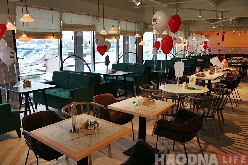 Новыя плошчы “Вялікага буфета” размясціліся там, дзе раней былі офісы адміністрацыі гандлёвага дома. Сталы размешчаныя так, каб кліенты змаглі палюбавацца прыгажосцю старога Гродна з вышыні.