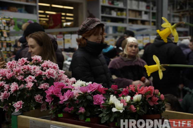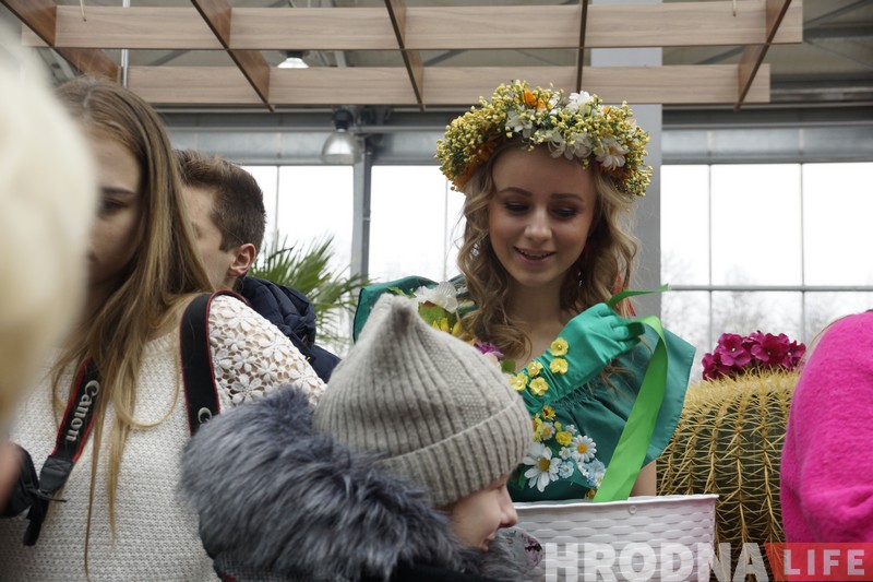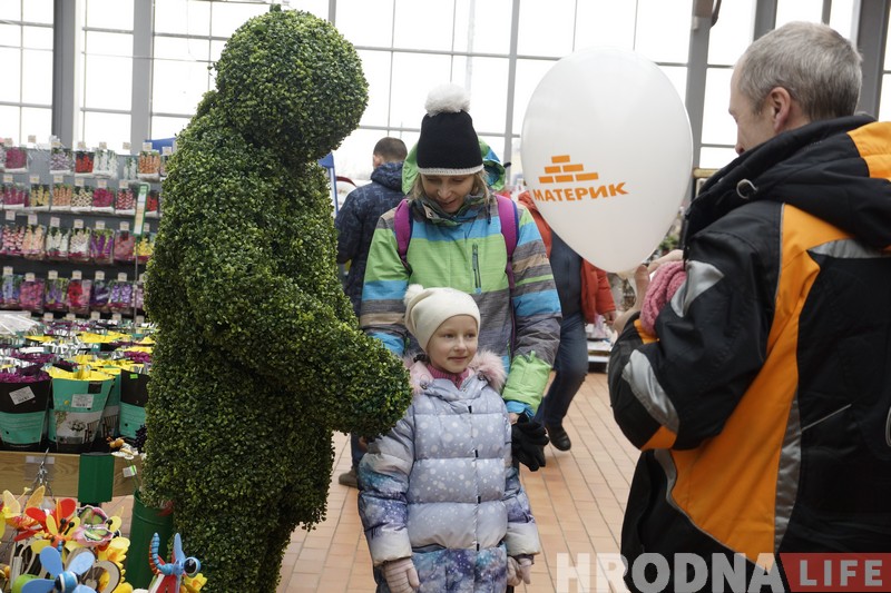 Чаму вясна прымчалася ў горад раней, чым скончылася зіма, стала ясна адразу. Па-першае, на аўто можна і наднаціснуць на газ, а па-другое, у садовым павільёне гіпермаркета кветкі квінеюць ужо поўным ходам. Так што Прыгажуню-вясну чакаў ва ўсіх сэнсах цёплы прыём. Яна ў адказ дзякавала гродзенцам і раздавала каму ўсмешкі, каму падарункі. Нават тыя, хто зайшоў у краму па справах, заставаліся паўдзельнічаць у святочных конкурсах і паназіраць за прадстаўленнем.