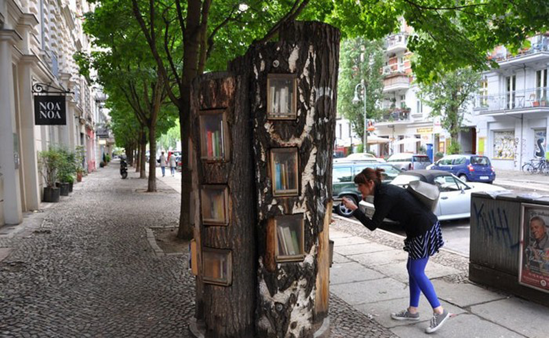 Мясцовая бібліятэкарка Людміла Гедроіць падгледзела ідэю ў інтэрнэце. Чатыры тоўстыя бярвёны вышынёй два метры паставяць адзін да аднаго «спінай». Унутры кожнага выражуць «дуплы». У іх любы жыхар пасёлка можа «пасяліць» парачку непатрэбных томікаў. Любы кнігалюб – узяць чытво дадому.