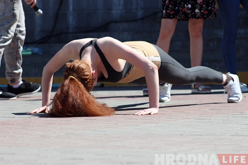 Каля 200 гродзенцаў 9 мая прынялі ўдзел у акцыі “Рэкорд Перамогі”. На працягу дзвюх гадзін ля Маладзёвага цэнтра “Гродна” гараджане адціскаліся, прысядалі і падымалі гіру. Усяго 26 663 разы.