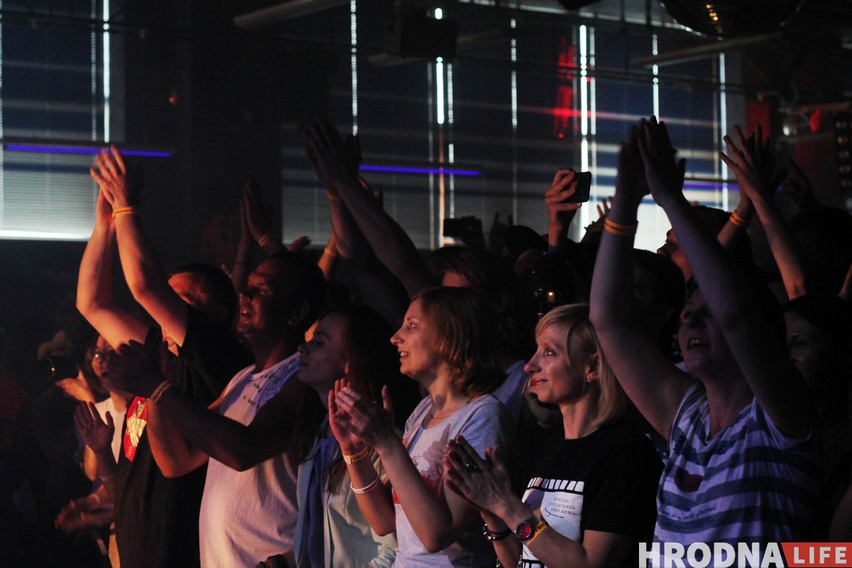 На ўваходзе ў залу нават сабралася чарга з жадачых трапіць на канцэрт. Наведвальнікаў з бел-чырвона-белымі сцягамі прасілі не даставаць іх, бо інакш іх бы вывелі з залы. Як патлумачыла кіраўніцтва, яны бачаць у гэтым правакацыю і ў “дзяржаўнай установе культуры” такога быць не павінна. Але гэта не перашкодзіла гродзенцам весела бавіць час, танцаваць і спяваць.