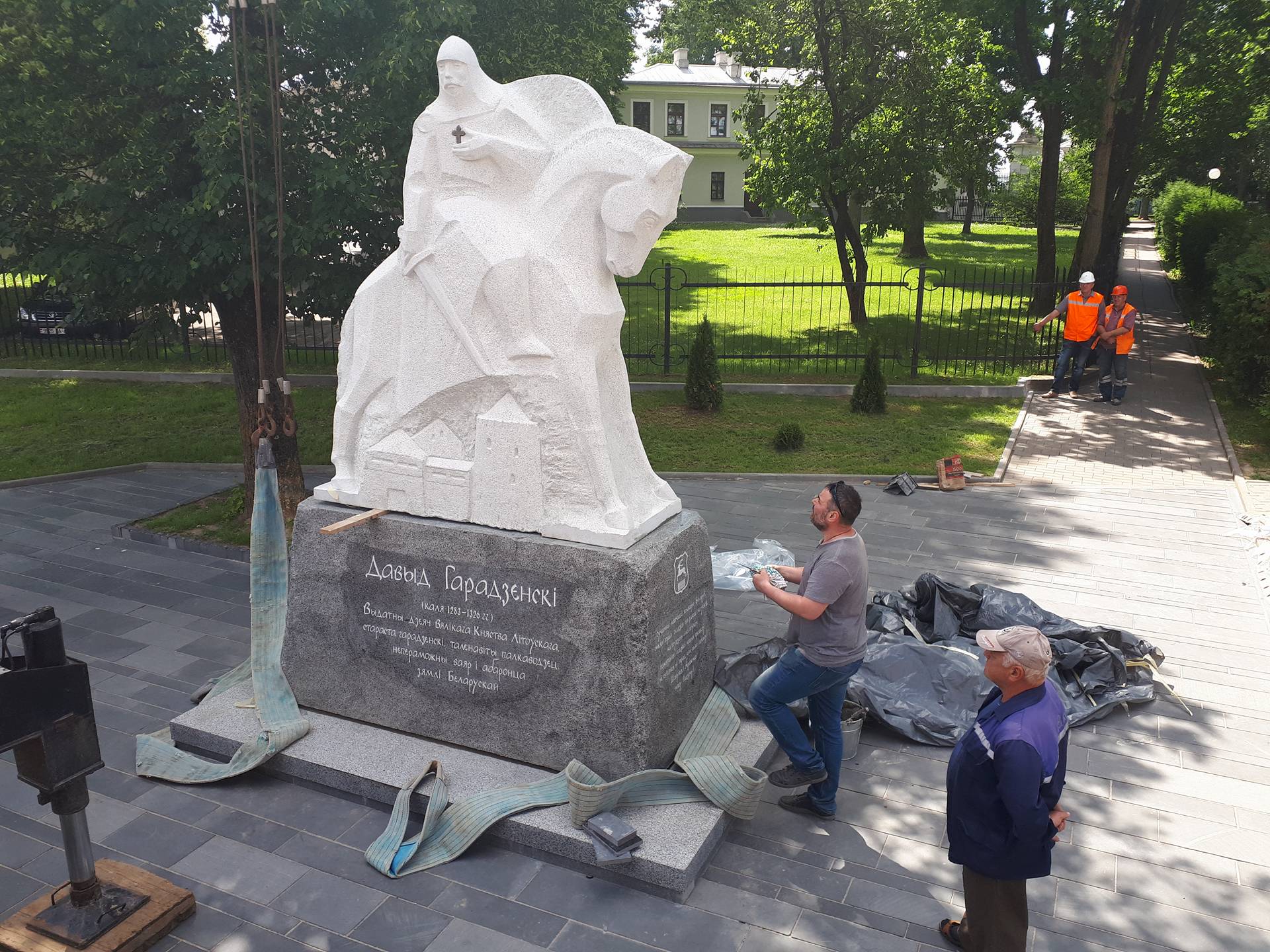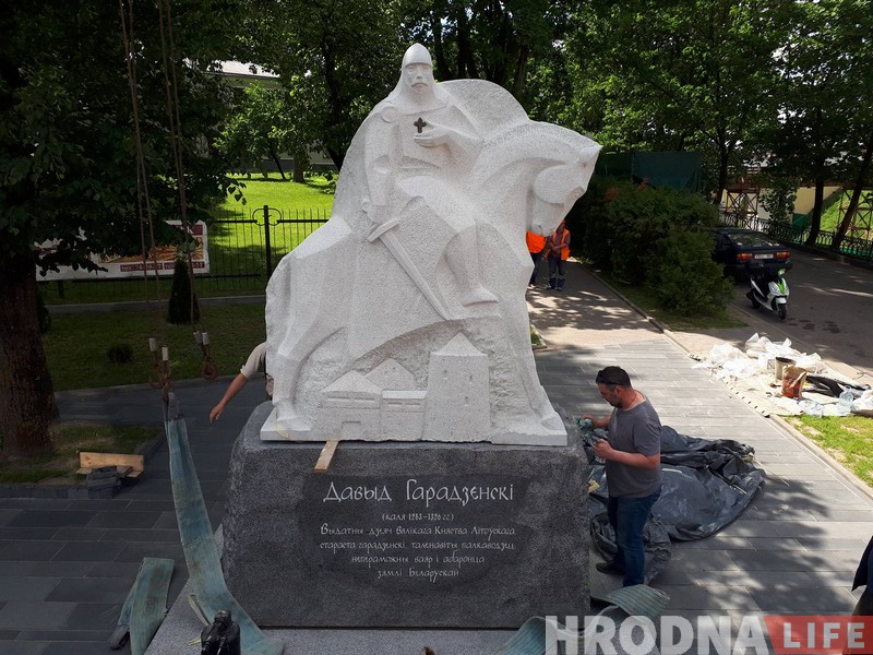 У чацвер 24 мая каля гродзенскіх замкаў усталявалі помнік Давыду Гарадзенскаму. Вага манумента – каля 16 тон. Скульптуру рабіў Сяргей Аганаў. Менавіта ў яго выкананні гродзенскі ваяр больш спадабаўся журы творчага конкурса праектаў.