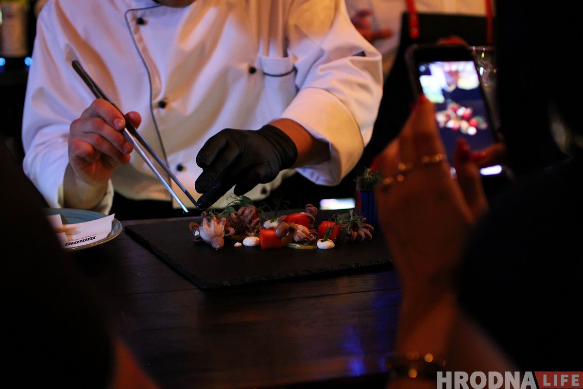 Несумненнай разыначкай вечара быў food pairing. «Хвалююся!» – шчыра сказаў Андрэй Грушынаў і выйшаў на імправізаваную сцэну – за барную стойку. «Food pairing – гэта не толькі стравы і напоі ў ідэальным спалучэнні. Гэта фармат камунікацыі паміж  шэф-кухарам і гасцямі. Таму не саромеемся: даём фідбэк смела і выразна». Па частцы страў майстар-клас даваў шэф-повар установы – Юрый Ярмак, па частцы алкаголю – бармэн Віталь Парфенчык.