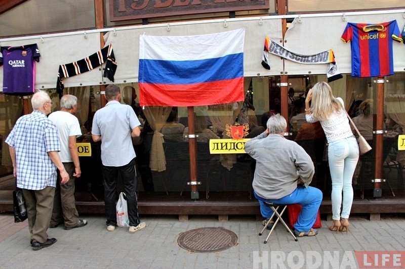 “Кафэ ўпрыгожвалі да чэмпіянату свету. Расія – краіна гаспадыня і нам удалося знайсці сцяг гэтай дзяржавы, а таксама некалькі футбольных маек і шалікаў, – распавядае адна з прадавачак. – Але прыходзілі людзі, якія былі незадаволеныя, што мы вывесілі такую ​​сімволіку. Адна жанчына наогул пераходзіла ўсе межы, мы гатовыя былі выклікаць на яе міліцыю. А пасля аднаго футбольнага вечара сцяг Расіі наогул скралі”.