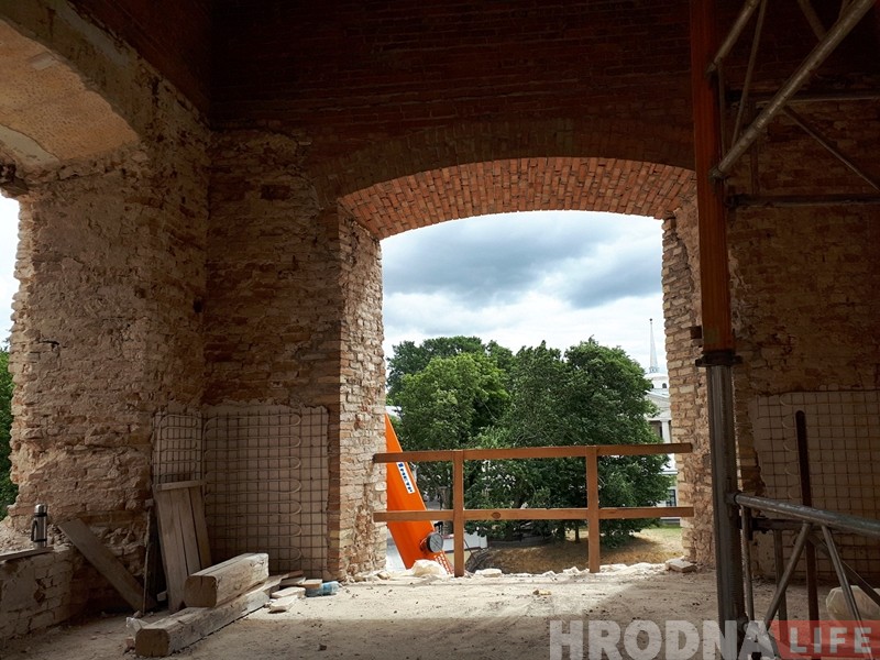 На сённяшні дзень будаўнікі больш нічога не разбіраюць і не нішчаць, а толькі будуюць новае. Вядуцца актыўныя работы над атыкам – трэцім паверхам вежы, заліваецца бетонае ўзмацненне сцен часоў Вітаўта.