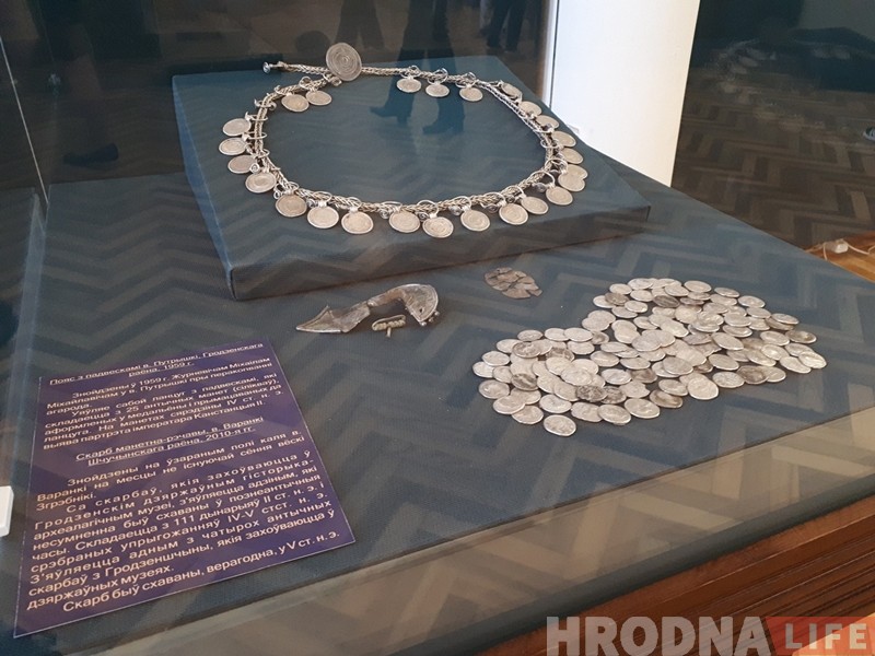 Дзясяткі вітрын, напоўненых сярэднявечнымі срэбранымі манетамі і зброяй, сталовымі прыборамі са шляхецкіх маёнткаў – усё гэта і шмат іншага можна пачабыць на вялікай выставе скарбаў “Хтосьці хавае, а хтосьці знаходзіць”, якая будзе даступнай для гродзенцаў аж да лістапада.