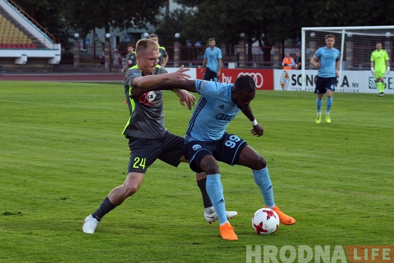 Каманды са стартавага свістка пачалі гуляць у жорсткі футбол, таму суддзі часта даводзілася спыняць час. Гродзенцы добра абараняліся і смела ішлі наперад. У адным з момантаў жоўта-зялёным амаль атрымалася забіць “Дынама”, але Гутар здолеў з лініі зняць мяч.